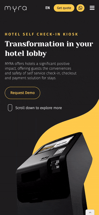 Contrary to their previous website, which focused on the check-in service, Myra's CEO wanted to shift direction on how they approach the market. The market has lots of solutions, and they throughly explain what the service is. No one was justifying why their solution was better. This is wasn't the right approach for Myra. They wanted to show off their beautiful kiosk, and clearly show how it the product itself would make the overall service better. The structure of the website would need to show that, specifying sections on each of the key elements that would make this product stand out: Design, Usability, Build Quality, Customisability, and Software Integrations. We built a structure around that.